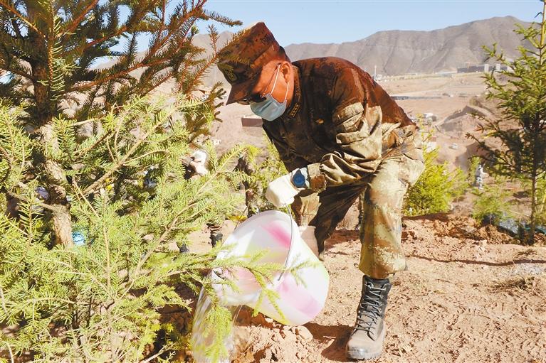 春意暖暖萬物蘇,又是一年植樹時(shí)。在第十個(gè)“世界森林日”來臨之際,西藏昌都軍分區(qū)130名官兵伴隨春日暖陽,前往昌都市卡若區(qū)孜通壩參加駐地全民義務(wù)植樹活動(dòng),用小樹苗為藏東高原再添新綠。