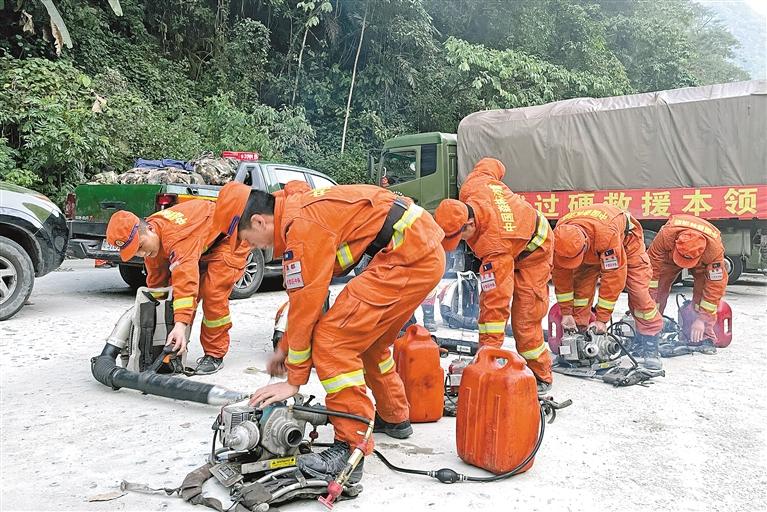 圖為在重特大森林火災(zāi)長途機動滅火增援實戰(zhàn)演練過程中,消防救援人員對裝備進行檢查維修。圖片由昌都市森林消防支隊提供