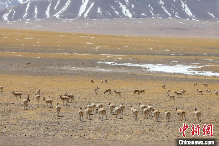 圖為3月27日,西藏改則縣先遣鄉(xiāng)附近的藏羚羊種群?!∵叞?攝