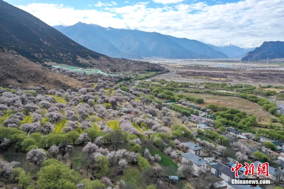 3月30日,桃花盛開的林芝市嘎拉村。西藏林芝市嘎拉村被譽(yù)為“林芝桃花第一村”,是林芝市最佳的賞花地之一。(無人機(jī)照片) 中新社記者 貢嘎來松 攝