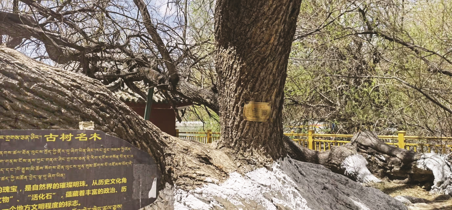 市園林局執(zhí)法科工作人員邊巴卓瑪介紹,為加強對古樹名木資源的保護管理,市園林局對每一株古樹的基礎(chǔ)信息和照片一起錄入信息系統(tǒng),制作了二維碼保護牌。通過掃碼,市民及游客即可看到樹木的基本信息、地理位置、生長狀況、保護等級和高清圖。通過這一措施進一步普及了拉薩古樹名木知識,引導(dǎo)全民愛樹、護樹。同時,為更好地保護古樹名木,市園林局專門設(shè)立了一些古樹名木詳細(xì)講解的立牌,還會開展冬季涂白、搭建撐桿、建立樹池等保護與管理工作,全力保護我市古樹名木。