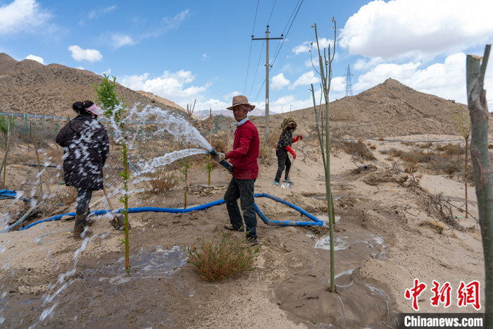 4月還是西藏的植樹季。記者沿雅魯藏布江而上,在桑耶寺上游十余公里處,松卡村十余位農(nóng)牧民正在一片荒灘上挖坑、栽種楊樹、澆水。“這個地方去年就開始種樹了,沙地種樹太難,一些樹沒有成活,今年再補種。”負責(zé)澆水的扎西杰布說,該荒灘被一家綠化公司承包,他們是受雇于公司。