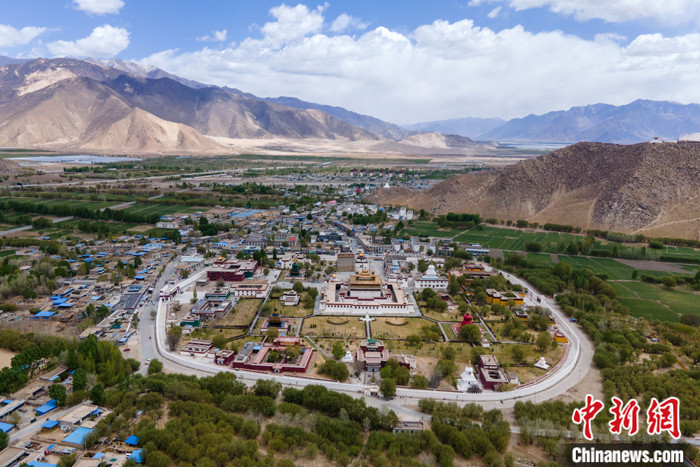 圖為4月18日,西藏桑耶寺周邊環(huán)境。(無人機照片) 中新社記者 江飛波 攝