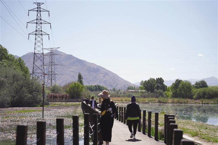 5月初,拉魯濕地里的花草樹(shù)木從春天的泛綠到初夏的翠綠,成為了拉魯濕地的一番美景。市民和游客步行其間,呼吸著充足的氧氣,邁著輕快而有力的步伐,沿著拉魯濕地步道前行,時(shí)而駐足觀望沿途美景,時(shí)而聚集一方合影留念,不僅鍛煉了身體,又領(lǐng)略了自然風(fēng)光,在盡情感受生態(tài)之美的同時(shí),也讓身心得到放松。