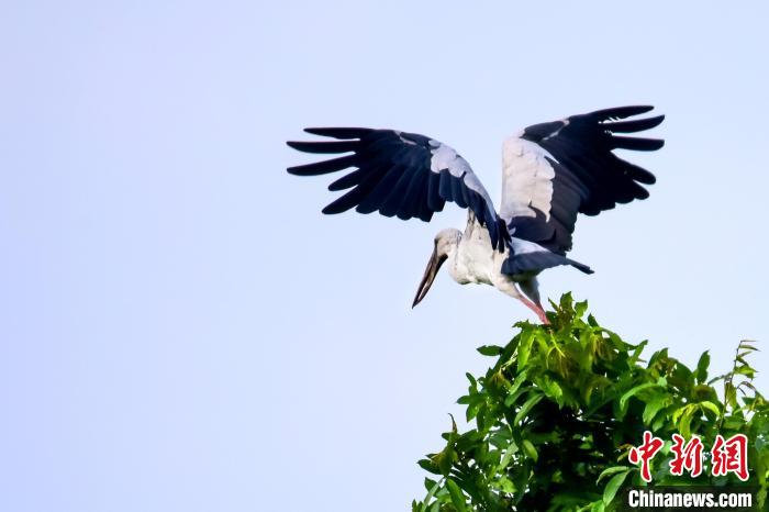 樹(shù)頂上的鉗嘴鸛?!≈軐W(xué)峰 攝