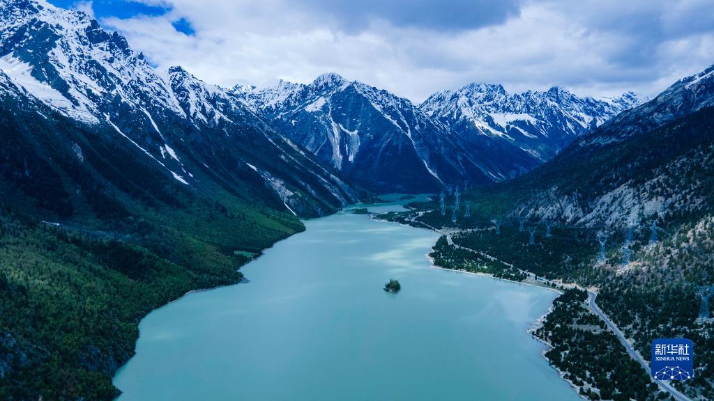 這是5月30日拍攝的然烏湖風(fēng)光(無人機(jī)照片)。新華社記者 范帆 攝