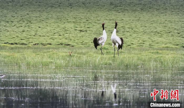 圖為黑頸鶴?!埦霸?攝