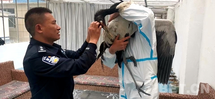 西藏阿里馬攸橋邊境檢查站救助國家一級保護動物丹頂鶴