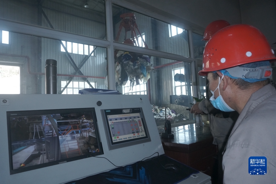 6月16日,門(mén)源縣泉口鎮(zhèn)生活垃圾高溫?zé)峤馓幚碚镜墓ぷ魅藛T正在忙碌。新華社記者 周盛盛 攝
