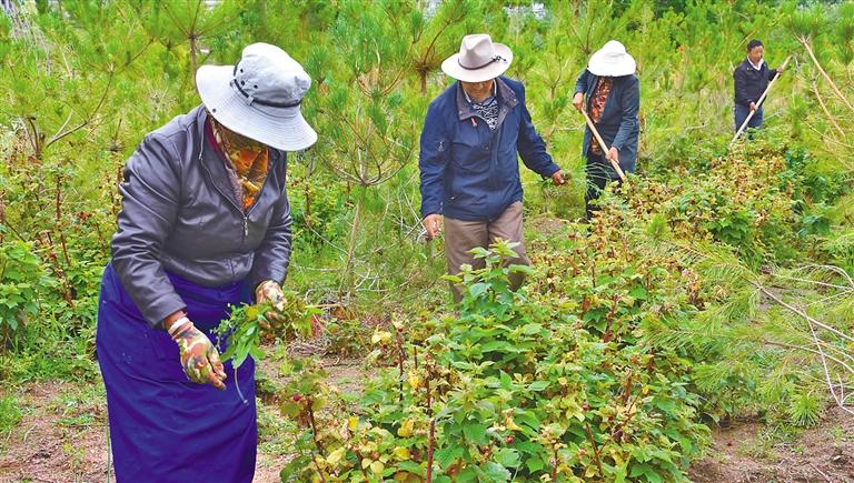 圖為村民在養(yǎng)護樹莓。