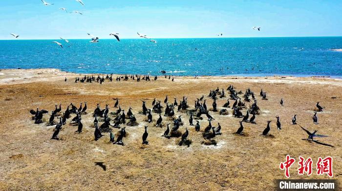 圖為青海湖北岸鳥類聚集。(資料圖) 剛察融媒供圖