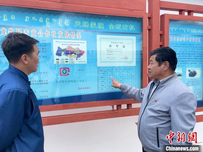 圖為河南縣農(nóng)牧水利和科技局農(nóng)辦項(xiàng)目辦主任才讓南杰(右)介紹合作社情況。祁繡娟 攝