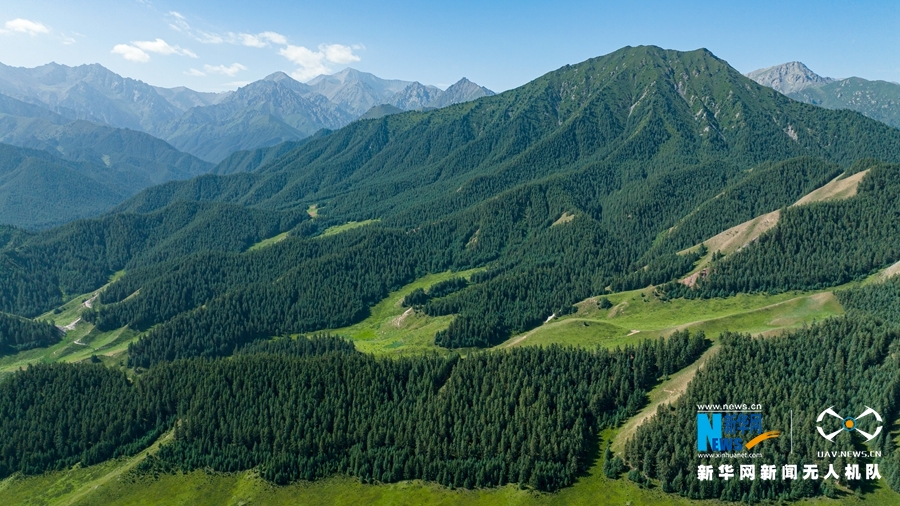 初秋時節(jié),甘肅省張掖市肅南裕固族自治縣馬蹄藏族鄉(xiāng)境內,祁連山延綿不斷,林海蒼翠茂密,勾勒出絢麗多姿的迷人景觀。新華網(wǎng)發(fā)(成林 攝)