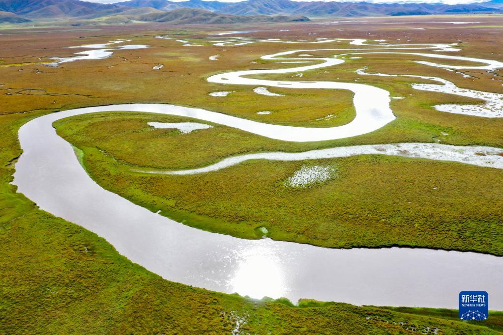 秋日里,位于甘肅省甘南藏族自治州瑪曲縣的阿萬倉濕地風景如畫。