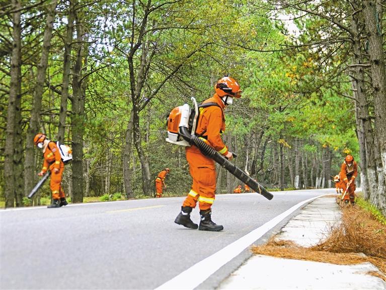 圖為林芝市森林消防支隊(duì)消防員在清理林緣可燃物。通訊員 李國(guó)燾 記者 旦增蘭澤 攝