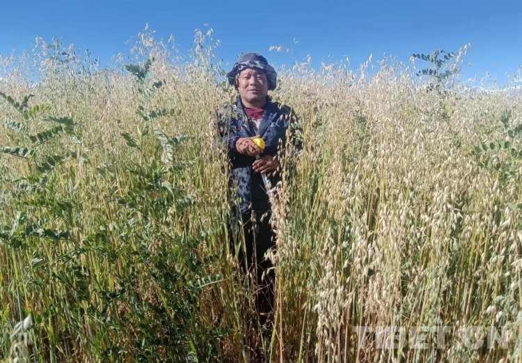 “今年,海拔3990米的林芝市工布江達(dá)縣示范點(diǎn)西藏蕃騰農(nóng)牧生態(tài)有限公司基地?fù)屖找荒晟潭够觳デ喔刹?80噸、夢(mèng)龍燕麥種子2噸;海拔4500米的阿里地區(qū)噶爾縣示范點(diǎn)阿里草原站基地是貝勒2號(hào)和箭筈豌豆混播,搶收青干草畝產(chǎn)突破1噸;海拔4660米的拉薩市當(dāng)雄縣示范點(diǎn)格達(dá)鄉(xiāng)甲朵村基地村集體是青海444燕麥和甜燕麥混播,搶收青干草28噸;海拔3800米的日喀則市桑珠孜區(qū)示范點(diǎn)邏瑪奶牛場(chǎng)搶收青飼玉米24噸;位于拉薩市的海拔3760米的核心試驗(yàn)點(diǎn)曲尼帕試驗(yàn)基地種子擴(kuò)繁點(diǎn)的數(shù)據(jù)正在匯總分析……”談及今年各示范點(diǎn)的數(shù)據(jù),多吉頓珠如數(shù)家珍。
