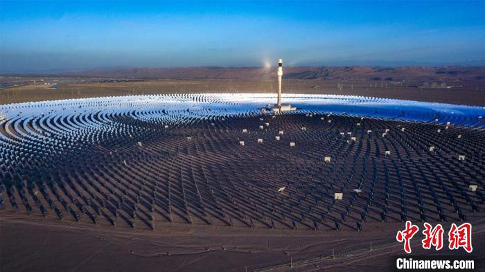 圖為10月16日,甘肅省敦煌市光電產(chǎn)業(yè)園區(qū)內(nèi),萬余面定日鏡以同心圓狀圍繞著260米高的吸熱塔。 王斌銀 攝