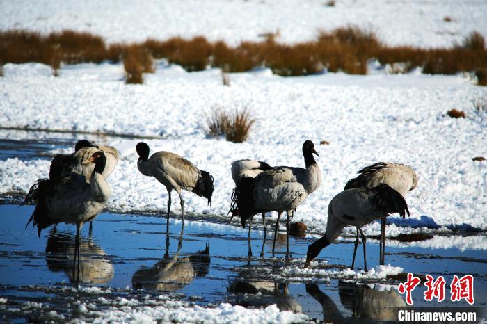 31日,2022年越冬黑頸鶴“先頭部隊”已抵達云南昭通大山包國家級自然保護區(qū)內(nèi)的大海子濕地。