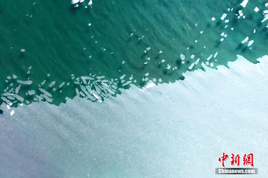青海湖湖面封凍如破碎“玉帶”