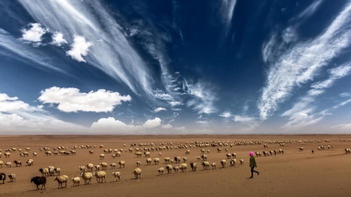 圖為焦生福作品《穿越沙漠的羊群》?!∏嗪J∑钸B山自然保護協(xié)會供圖