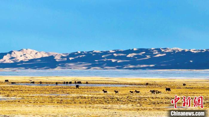 和煦的春風(fēng)為沉默一冬的高原帶來蓬勃生機(jī),野牦牛、藏羚羊、藏野驢等珍稀野生動(dòng)物在一望無際的高原上覓食。 阿爾金山國家級自然保護(hù)區(qū)管理局提供