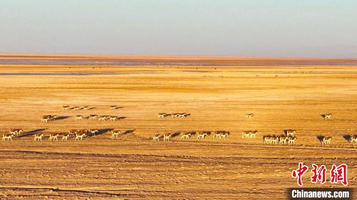 在平均海拔4500多米的阿爾金山上,遼闊的依協(xié)克帕提湖冬雪初融,清澈的湖面上尚未融盡的薄冰宛如一面光滑的鏡子,將高原蔚藍(lán)的天空倒映在湖面上;芳草叢生的湖岸邊,有著“高原坦克”之稱的野牦牛在水源地附近悠閑漫步,享受著大自然賜予的春日“盛宴”;時(shí)而有三五成群的藏羚羊從牦牛群旁經(jīng)過,他們有的邁著小碎步追逐嬉戲,有的則停步駐足,好奇地打量著周邊的環(huán)境;擅長奔跑的藏野驢成群結(jié)隊(duì)地奔跑著,飛奔的藏野驢群騰起一路煙塵,展現(xiàn)出別具一格的野性之美……