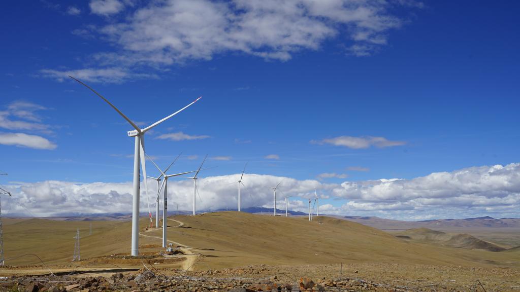 西藏措美哲古風(fēng)電項目一處風(fēng)電機(jī)組。(三峽集團(tuán)西藏能源投資有限公司供圖)