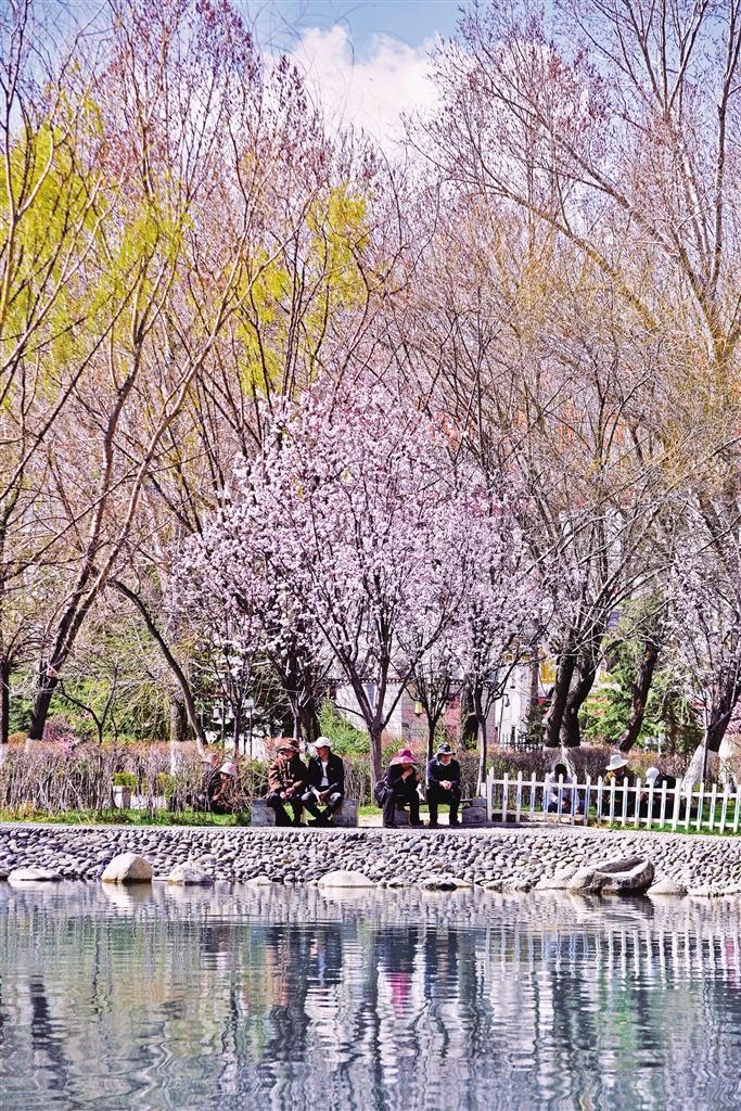 那么,去哪里查收這份“春日限定大禮包”呢?最近幾天,記者的朋友圈都被帕崩崗的美景霸屏了,一波又一波的朋友到這里打卡。除了去帕崩崗賞桃花,更不容錯(cuò)過(guò)的一定是拉薩大街小巷以及公園中驚鴻一瞥的美景。宗角祿康公園植被繁茂、古樹(shù)較多,一到春季,玫粉色的榆葉梅綻放枝頭,層層花瓣在陽(yáng)光的照耀下嬌俏動(dòng)人,一樹(shù)粉色花朵倒映在幽綠的湖水中,盡顯詩(shī)意。此外,緊鄰羅布林卡的羅堆東路也有意想不到的美景,每到這個(gè)季節(jié),紅葉李便會(huì)沿路盛開(kāi),淡粉色的花瓣搭配深紅色的花蕊,甚是好看。金珠西路沿途的景色也令人耳目一新,淡粉色的花朵肆意綻放,等紅燈時(shí)的心情因這些花朵變得不再焦灼。