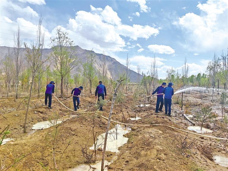 近日,西藏森林消防總隊(duì)訓(xùn)練大隊(duì)組織消防指戰(zhàn)員,前往拉薩市曲水縣才納鄉(xiāng)植樹示范林區(qū),開展示范林區(qū)綠植的澆灌工作,確保種植的苗木健康成長(zhǎng),綠化成果不受損失。據(jù)悉,今年春季,該大隊(duì)積極響應(yīng)西藏自治區(qū)“提質(zhì)增綠行動(dòng)”會(huì)議精神,在植樹示范林區(qū)種植新樹苗3000余株,為拉薩再添新綠。