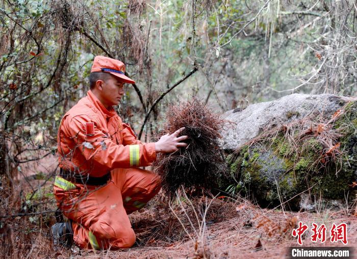 消防員正在勘察林下可燃物載量?!∥骼@拉翁 攝