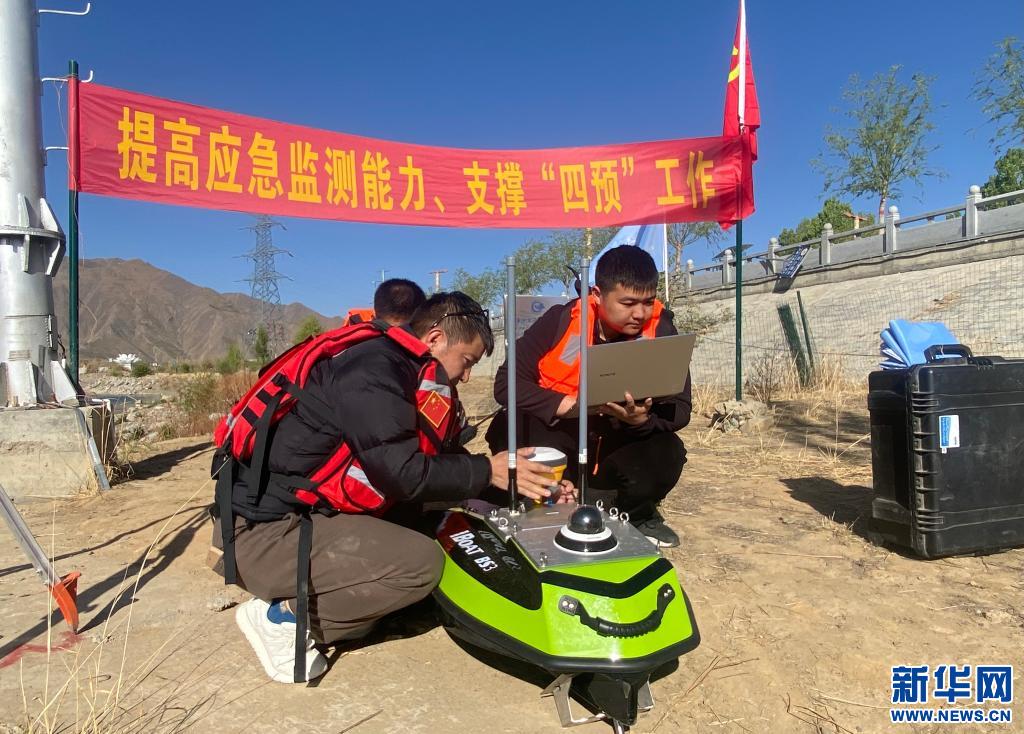 應急演練現場,參訓人員正在通過新技術監(jiān)測拉薩河水文信息。(4月27日 攝) 新華社記者 春拉 攝
