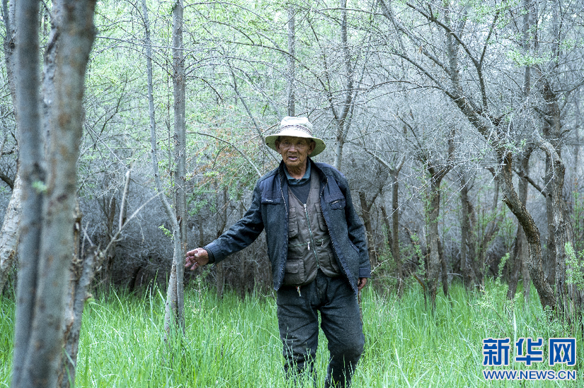 6月8日,索朗拉杰在介紹20多年前種的沙棘。新華網(wǎng) 旦增努布 攝