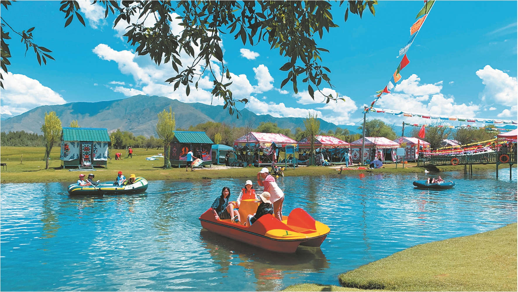 時下,正是“過林卡”的最好時節(jié),為了吸引客源、招攬生意,林卡經(jīng)營者不斷完善基礎(chǔ)設(shè)施,搭建漂亮的帳篷,提供特色服務(wù),滿足市民游客戲水、劃船、健身運(yùn)動和特色美食等需求。