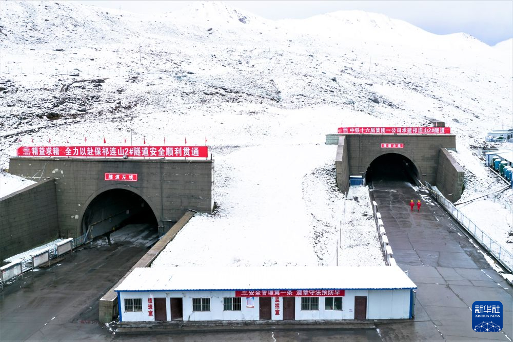 7月3日,國道569曼德拉至大通公路祁連山2號隧道實現(xiàn)右線貫通。(中鐵十六局集團供圖)