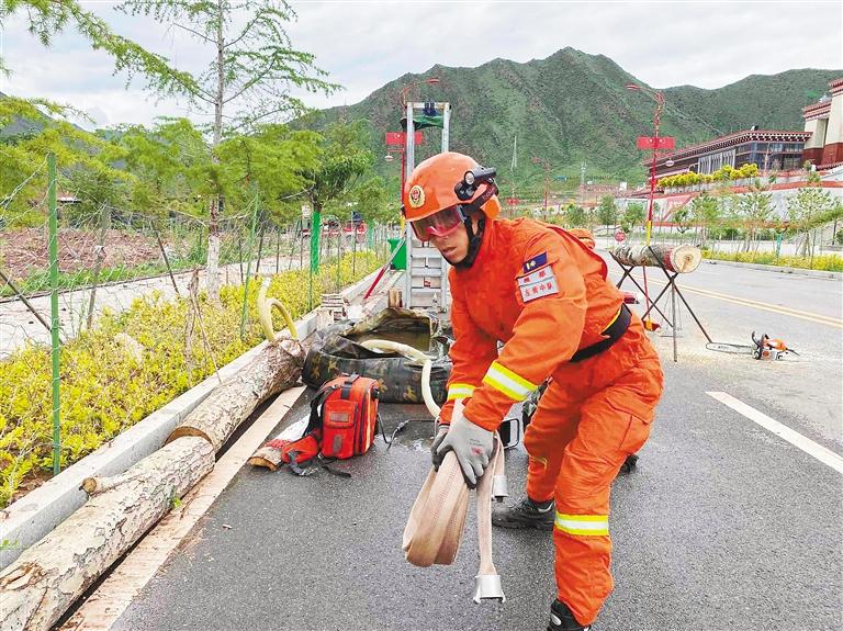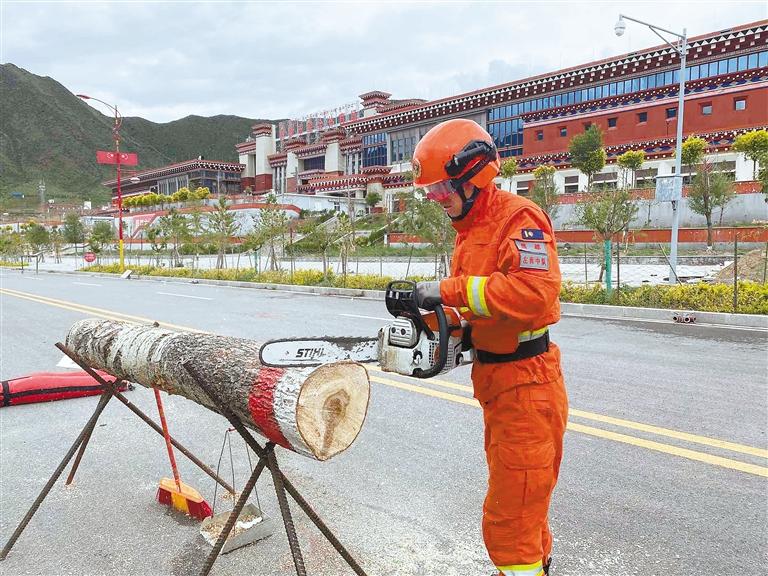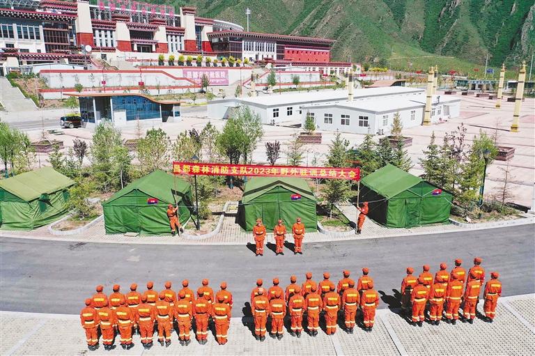 夏日的陽光溫暖宜人,透過稀薄的云層將大地映照得一片明亮……在昌都市森林消防支隊野外駐訓場,消防員配合默契地忙碌著,彼此間交流著簡短而高效的口令。有人把帳篷拆解成零件,有人裝卸救援裝備,有人檢查車輛安全性能……