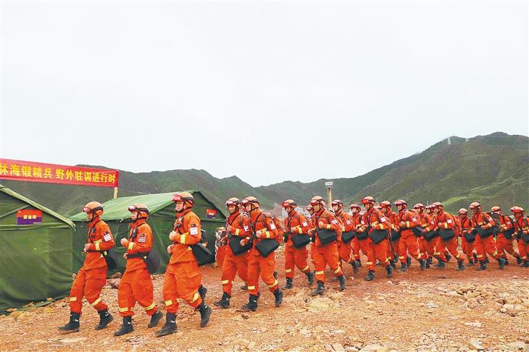 昌都市森林消防支隊駐訓人員積極參加野外駐訓。