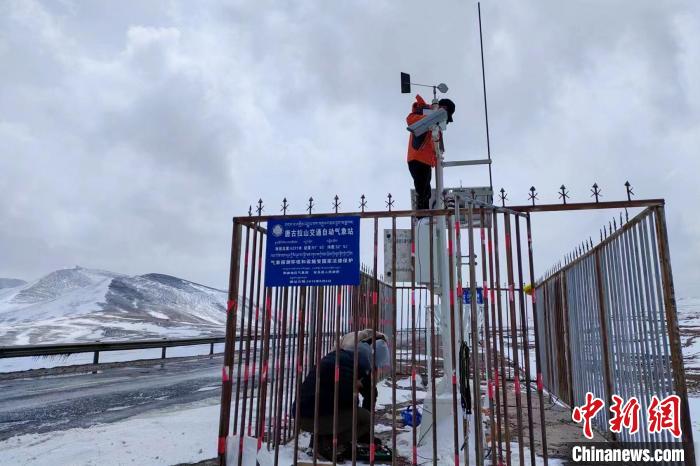 資料圖為西藏氣象工作人員維護(hù)唐古拉山交通自動氣象站。張歆平 供圖