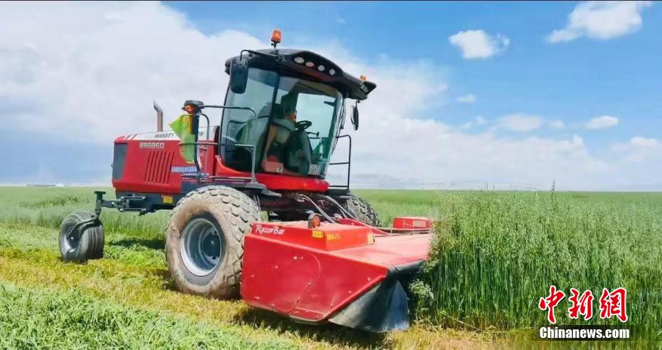 青海德令哈萬畝紫花苜蓿開鐮收割