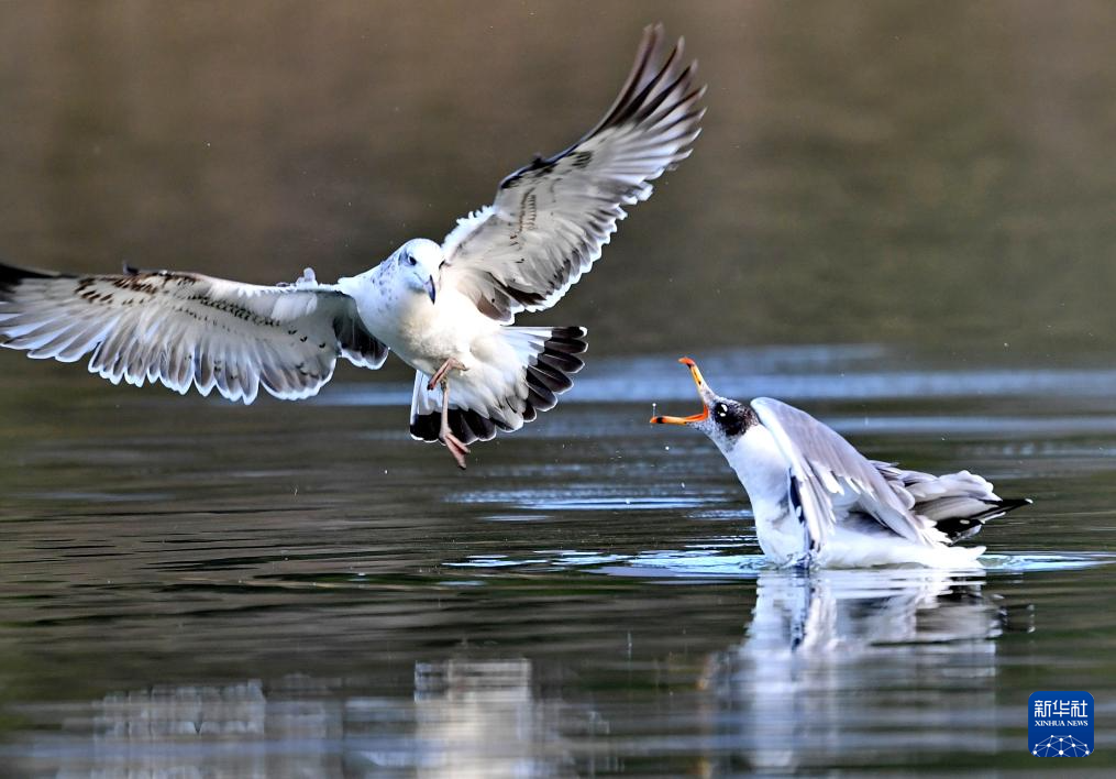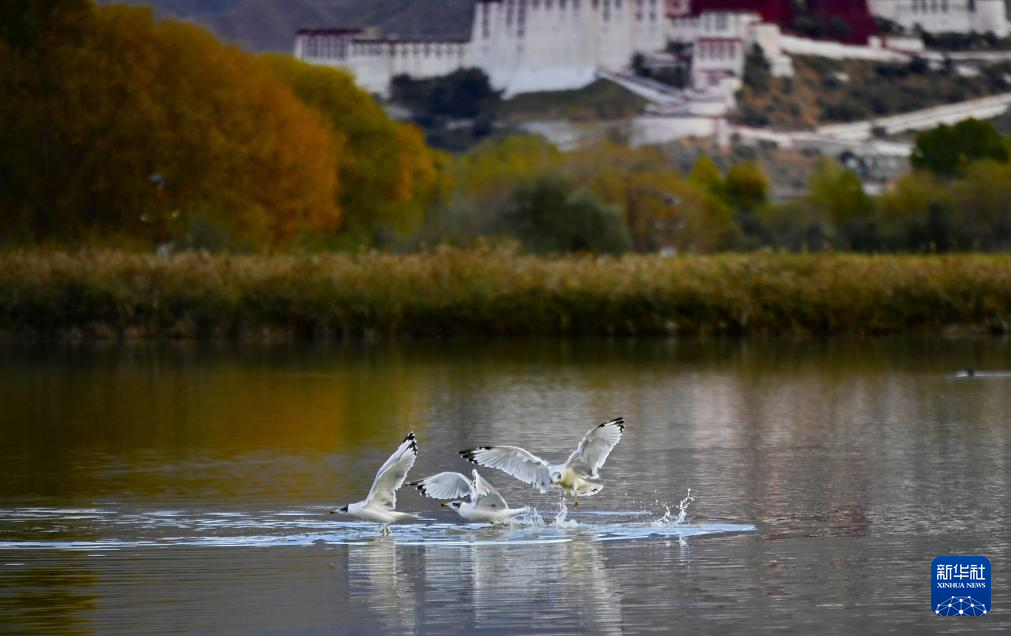 金秋十月,漁鷗在西藏拉薩市國家級自然保護區(qū)拉魯濕地里嬉戲,惹人喜愛。