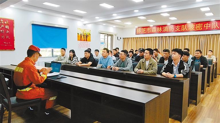 圖為林芝市森林消防支隊(duì)波密中隊(duì)的消防員為護(hù)林員普及緊急避險(xiǎn)和自救常識。記者 旦增蘭澤 通訊員 李國燾 攝