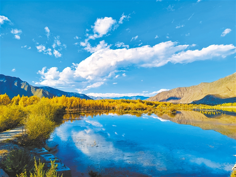 藍(lán)天、白云、湖泊、草原、樹林,拉薩深秋的色彩最為豐富,風(fēng)光最為寧靜、澄澈、壯美。
