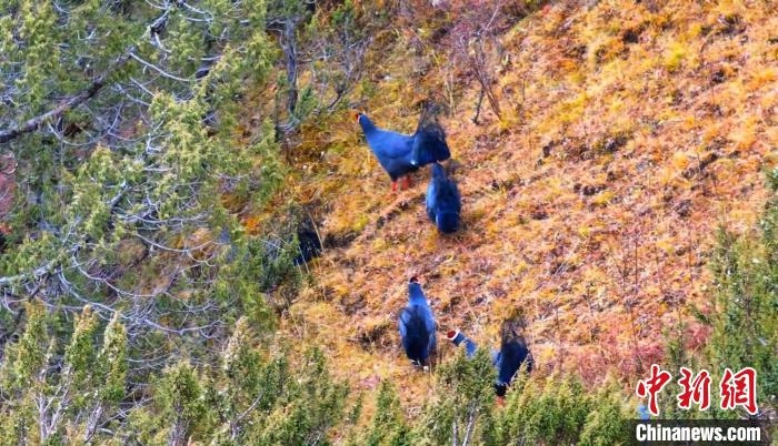 珍稀保護(hù)動(dòng)物藍(lán)馬雞現(xiàn)身青海班瑪多柯河林區(qū)