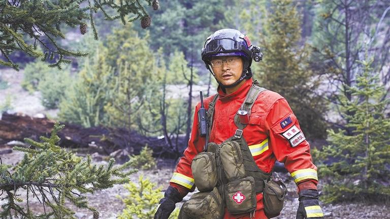 2020年的一天,林芝市突發(fā)一起森林火災(zāi)。3000多米的海拔,平均70度的坡度,還要背著幾十公斤的裝備,一個(gè)個(gè)不利因素都在考驗(yàn)著李渡和他的隊(duì)友們。面對(duì)困難和危險(xiǎn),身為分隊(duì)長(zhǎng)的李渡主動(dòng)請(qǐng)纓,要求第一批徒步接近火場(chǎng)打開(kāi)突破口。李渡背上管帶、水泵,帶領(lǐng)著隊(duì)友們毅然走向火場(chǎng)。大火撲滅后,曾有人問(wèn)他怕不怕?他說(shuō),怕是怕,但我們絕不能退,因?yàn)樯较掠刑嗥诖覀兒孟⒌娜嗣袢罕姟?/p>
