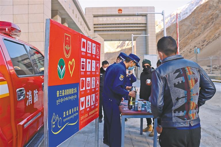 為進(jìn)一步提高入境外籍游客和商人的消防安全意識(shí),展示可信、可愛(ài)、可敬的良好消防形象,連日來(lái),西藏消防救援總隊(duì)相繼在日喀則市吉隆口岸、樟木口岸,阿里地區(qū)普蘭口岸設(shè)立“雪域藍(lán)焰”服務(wù)驛站,開(kāi)展“三語(yǔ)”(中文、英文、藏文)消防安全宣傳活動(dòng),為繁榮“口岸經(jīng)濟(jì)”、推進(jìn)固邊興邊富民工作提供堅(jiān)實(shí)的安全保障。