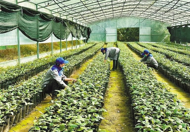 圖為墨脫縣格當(dāng)鄉(xiāng)尼日卡林下資源合作社員工在修剪白肉枇杷苗。記者 王敏 通訊員 郎玲 攝