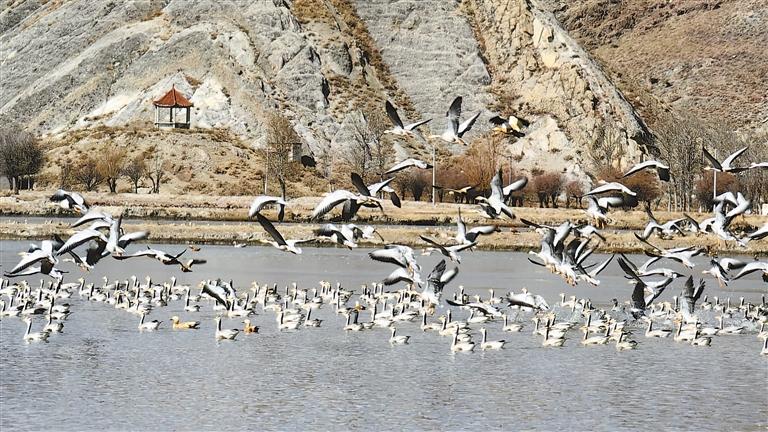 近年來(lái),西藏不斷加強(qiáng)野生動(dòng)物保護(hù)力度,全面提升自然保護(hù)區(qū)基礎(chǔ)設(shè)施、管理水平,健全完善野生動(dòng)物保護(hù)法律法規(guī),野生動(dòng)物保護(hù)工作取得顯著成效。隨著各族干部群眾保護(hù)意識(shí)不斷增強(qiáng),斑頭雁、赤麻鴨、紅嘴鷗等大量保護(hù)動(dòng)物都會(huì)飛到西藏過(guò)冬,它們聚集在西藏的各個(gè)湖畔,時(shí)而凌空盤旋、時(shí)而悠閑踱步,鳥鳴聲此起彼伏,構(gòu)成了冬日里一道美麗的風(fēng)景。