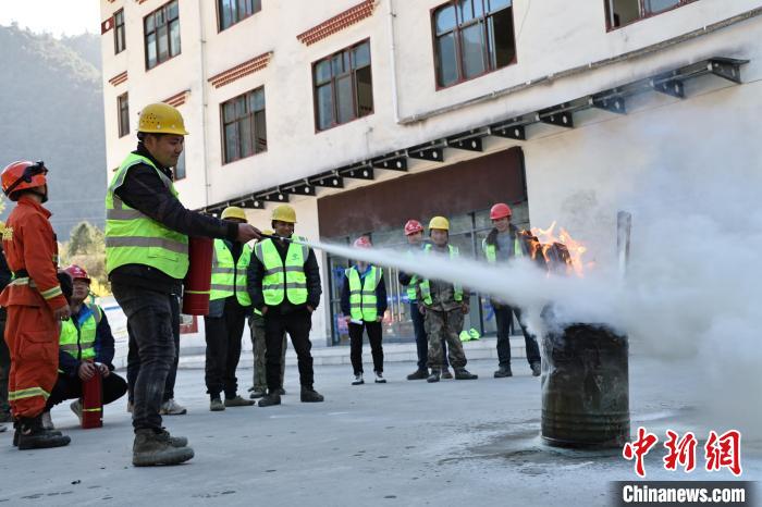 圖為項目部職工正在進行滅火器操作。趙健宇 攝