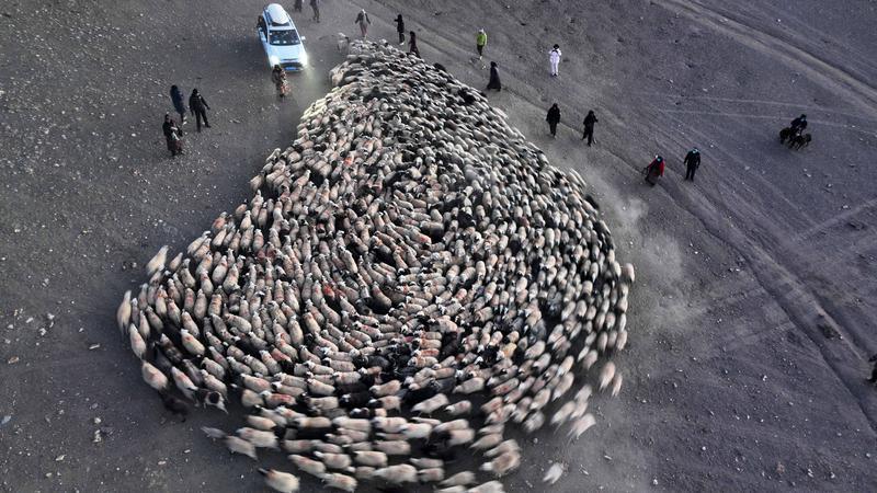“每年趕羊前10天,村里家家戶(hù)戶(hù)都會(huì)開(kāi)始準(zhǔn)備爐灰,爐灰是用來(lái)撒在冰面上防止羊群摔倒?!蓖颜f(shuō)。雖然提前撒好了防止羊群打滑的爐灰,但還是會(huì)有頻繁打滑摔跟頭的羊,此時(shí)牧羊人就會(huì)扶它們起來(lái),或背或抱,把它們送到目的地。