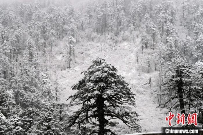 2023年12月18日,西藏墨脫縣一片高山針葉林被積雪覆蓋,枝干上有附生植物。墨脫被稱為生物多樣性寶庫(kù)。江飛波 攝