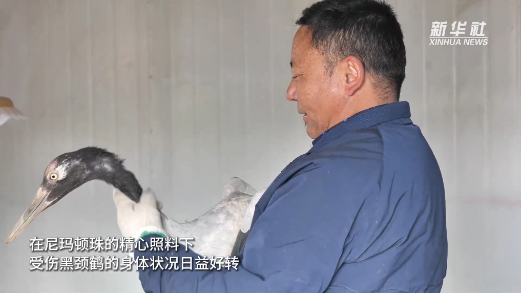 去年10月,野生動物保護員尼瑪頓珠在阿熱濕地例行巡護時發(fā)現一只左側翅膀受傷的黑頸鶴,跟上級有關部門匯報后,尼瑪頓珠將其帶回家中,開始了為期五個月的治療和康復。